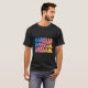 I give wanted to give this a 4 instead of a 5 because these Basic DARK T0shirts run unexpectedly SLIM or Narrow. Which is great if you do not have a potbelly, but I have a paunch. It isn't the shirt's fault that I've got a beer belly. The design and shirt itself is a quality cotton shirt. The color is more of a deep purple, but still a very pretty color. The Basic DARK T-shirts run a bit SLIMMER than the Basic Ts. The neck is a fraction narrower (or seems to be narrower) also. I'm a paunchy middle-aged woman and my neck is 12 inches (31cm) thick and the neckline fell about the same as in the photo of the man, and I had the desire to tug it a bit. So if you're a thick necked man or like loose shirts, be aware these are slimmer shirts. Once I get rid of my lockdown paunch it'll look great. The shirt washed well in cold water with no apparent bleeding. We don't have a dryer, so it hung dry. Did not shrink. Love the colors and the design. The design looks smaller on my shirt than it does on the model on-line. But still, it looks good on the shirt. The printing looks as it does on the model, just the size seems fractionally smaller. Washed garment in cold water, hung dry and design appeared unaffected.