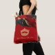 This tote bag is shown in a striking mix of colours ink marble tear art print in red and black with gold-coloured marbling. Large iconic Miss America type crown print which you can change the colour of is centred on both front and back of this tote bag along with your personalised text. Text and crown images shown in a coordinating colour.