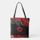 This tote bag is shown in a striking mix of colours ink marble tear art print in red and black with gold-coloured marbling. Large iconic Miss America type crown print which you can change the colour of is centred on both front and back of this tote bag along with your personalised text. Text and crown images shown in red.