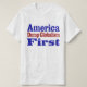 Shirt promoting policies to help America instead of the agendas of globalists. Shirt available in multiple colours and styles with short of long sleeves for adults and children.