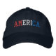 AMERICA Red White and Blue Embroidered on Navy Hat