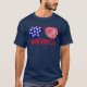 I give wanted to give this a 4 instead of a 5 because these Basic DARK T0shirts run unexpectedly SLIM or Narrow. Which is great if you do not have a potbelly, but I have a paunch. It isn't the shirt's fault that I've got a beer belly. The design and shirt itself is a quality cotton shirt. The color is more of a deep purple, but still a very pretty color. The Basic DARK T-shirts run a bit SLIMMER than the Basic Ts. The neck is a fraction narrower (or seems to be narrower) also. I'm a paunchy middle-aged woman and my neck is 12 inches (31cm) thick and the neckline fell about the same as in the photo of the man, and I had the desire to tug it a bit. So if you're a thick necked man or like loose shirts, be aware these are slimmer shirts. Once I get rid of my lockdown paunch it'll look great. The shirt washed well in cold water with no apparent bleeding. We don't have a dryer, so it hung dry. Did not shrink. Love the colors and the design. The design looks smaller on my shirt than it does on the model on-line. But still, it looks good on the shirt. The printing looks as it does on the model, just the size seems fractionally smaller. Washed garment in cold water, hung dry and design appeared unaffected.