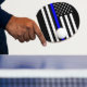 A Thin Blue Line symbolic flag design graphic. A great gift idea for gatherings, memorial celebrations and remembrance occasions.