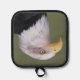Safely handle baking trays, cookie sheets and muffin tins from the oven with this pot holder with black trim that features the photo image of a white-headed American Bald Eagle with sharp beak. Select your pot holder backing style.