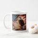 Show your love for America with our stunning image featuring an American bald eagle perched on the U.S. Constitution. The eagle, a symbol of freedom and strength, stands proudly against the backdrop of the American flag. This high-quality image is a must-have for any patriotic home or office.