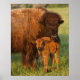 American Bison cow and calf, North Dakota Poster