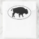This Euro style oval logo includes an American bison bull icon. Weighing up to 2,000 pounds or more, bison bulls ferociously defend their herds. Once nearly exterminated by market hunters, bison herds are slowly recovering in North America. The American bison is also known as buffalo.