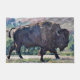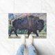 An imposing American bison, with its rugged coat and powerful stance, walking amidst scenic grassy plains. The surrounding environment enhances the wild beauty of this iconic North American animal.