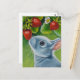 American Blue Rabbit & Strawberries Watercolor Art Postcard