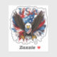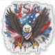 The American Bald Eagle, a symbol of strength and freedom, is depicted with majestic wings outstretched, proudly surrounded by a display of vibrant patriotic flag colors. Above the eagle, the initials USA in patriotic red, white, and blue colors. This striking image captures the spirit of America, uniting the noble bird with the enduring symbolism of the United States flag.