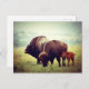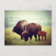 Beautiful photograph of a family of American bison, also known as American buffalo. This wonderful animal is the national mammal of the United States and featured as a symbol in coins, many state flags and national park insignia (including Yellowstone National Park). It is the state mammal of Kansas, Oklahoma and Wyoming. For Native Americans, the buffalo is a powerful sacred animal.