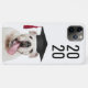 Designed especially for celebrating a graduation, an American bulldog proudly wears a graduation cap with red tassel. A text template with the graduation class year can be personalised to any year desired.