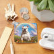A personalised American Bulldog rainbow bridge memorial keychain with a painting of a happy American Bulldog on a serene heavenly hill with a beautiful rainbow overhead. Symbolising the American Bulldog has passed the rainbow bridge to doggy heaven. Personalise it with your own American Bulldog dog's name or any other text on the back side of the keychain. Makes a wonderful memorial gift for any American Bulldog dog lover.