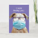This American Bulldog is in a fog. Literally. Wearing a face mask with glasses makes it a little hard to see when your glasses are fogged up. Humourous card for dog lovers to let them know you're thinking of them (and miss seeing them).