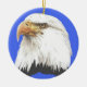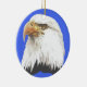 Patriotic Christmas ornament has an eagle against a blue background on the front. The red, white, and blue back reafs "God Bless America" and :"Christmas 2010," both of which can be changed if desired.