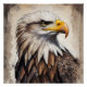 An American Eagle with detailed watercolor with expressive eyes is portrayed against a soft, blurred background. The natural colours enhance the lifelike appearance.