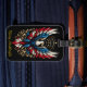 An illustration of a bald eagle with its wings spread wide, featuring the colours of the American flag.
