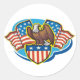 Show your patriotism with this stately eagle. The design is of an eagle with American flags background.