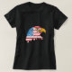 American Eagle design shows an eagle with American flag colors, Stars and Stripes plumage. A fun patriotic image for USA supporters and fans of the Eagle.