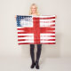 Fleece blanket in vibrant red, blue, and white, featuring the American flag and English flag merged together in a wood grain textured design.