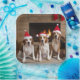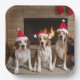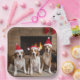 An enchanting scene captures the essence of cosiness and holiday spirit as furry companions adorned in Santa Claus hats gather around a crackling fireplace. The warmth emanating from the hearth creates a snug atmosphere for these adorable canines, while festive stockings hang in the background, enhancing the merry ambiance. The charming illustration portrays a timeless image of companionship and festive joy, perfect for celebrating the holiday season with a touch of canine charm.