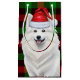 Dog lovers will adore receiving or giving this cute and funny holiday gift bag featuring an adorable American Eskimo wearing festive accessories on a plaid in red and green holiday shades.