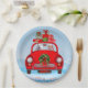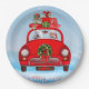American Eskimo Dog In Car With Santa Clause Paper Plate