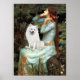 Ophelia (seated) by John W. Waterhouse (1898), adapted to include an American Eskimo Dog. Waterhouse based this painting on Shakespeare's Ophelia.