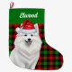 American Eskimo Dog Plaid with Name Large Christmas Stocking