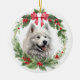 American Eskimo Dog Red Bow Holly Wreath Ceramic Tree Decoration