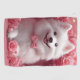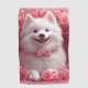 featuring Dog sitting gracefully among pink and red roses, surrounded by pastel hearts. With its clean, modern aesthetic and soft pink tones, this design is perfect for spreading warmth and affection on Valentine's Day.