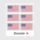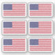 Six Custom-cut vinyl stickers with flag of USA (United states of America); red, blue and white flag with stars and stripes