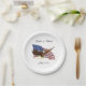A waving US flag and a flying bald eagle. Add names and date of your wedding or event.