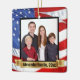 American Flag Photo Personalised Ornament, Christmas Ornament personalised with your family portrait, name or headline. Features red white and blue stars and stripes design. Great ornament gift idea for anyone!