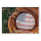 American flag design on ball in glove.