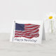 a photo of the veteran's memorial flag in bellingham, wa proudly waving on a breezy day with "happy birthday" in matching blue script as a patriotic birthday card. left blank inside for your custom message.