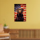A close-up portrait of a Chocolate Labrador Retriever, its fur rendered in a painterly style, with a slightly blurred American flag as the background. The dog's eyes are focused on the viewer, conveying a sense of loyalty and patriotism. The flag's red, white, and blue colours are muted, creating a warm and nostalgic atmosphere. Ideal gift for labrador lovers.