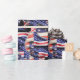 This patriotic wrapping paper is covered with a collage of American flags. The festive red, white, and blue will be the hit of any patriotic celebration.