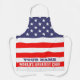 American flag custom BBQ cooking kitchen apron for men and women. Add your own funny quote, name or saying. Personalised baking aprons with humourous text. Fun Birthday gift ideas for him or her. Also great for patriotic barbecue party or 4th of July gathering. Available in small, medium and large sizes. White or custom background colour. USA pride design with red white and blue flag of America. Make one for dad, mum, wife, husband, boyfriend, girlfriend, uncle, brother, grandma, coworker, chef, boss etc. Stars and stripes of United States.