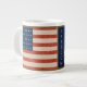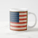 For the thirsty and the free! On each side of this jumbo mug is a stylised version of the flag of the United States of American (artistic license taken on number of stars). Between them, is a deep navy blue banner w/ the word "FREEDOM" running down it vertically. Coordinates with HoMeArts "American Flag" Series of dishes, table linens, clocks & more!