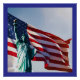 "Celebrate American pride with this striking design featuring the American Flag blowing in the wind behind the iconic Statue of Liberty. A bold and patriotic image perfect for any occasion that honors freedom & Liberty."