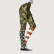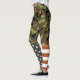 Patriotic American flag and green camouflage leggings.