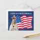 Red, white and blue American Flag and an image of Our Lady of Fatima, the Blessed Virgin Mary & Fireworks. Fonts and texts may be modified.