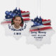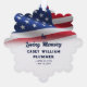 American flag themed memorial ornaments with a photo of your loved one against a background with the American flag, navy blue fonts, and a white background.
