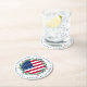 Add the finishing touch to your holiday party American Flag Merry Christmas coaster - Holiday wreath in a USA American flag design modern red white blue design with holly and berries. This patriotic Christmas coaster is perfect for military families, veterans, patriotic family. COPYRIGHT © 2020 Judy Burrows, Black Dog Art - All Rights Reserved. American Flag Patriotic Christmas Wreath Round Paper Coaster