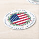 American Flag Patriotic Christmas Wreath Round Paper Coaster