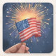 American Flag Patriotic Watercolor Painting Square Paper Coaster