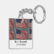 It has the Red, White and Blue American Flag on a fuzzy background in a tiled pattern. Good for everyday use, for house, car or any sort of keys.