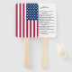 Festive handheld fans with a U.S. flag front and customisable back keep your guests cool while making sure everyone as access the National Anthem lyrics or other event related information for Anthem singing, patriotic ceremonies, concerts, school events, weddings, parades, rallies, or promotions. You can also choose to replace the text on the back with hymn lyrics, event program, or a custom message.