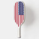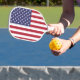 American flag pickleball paddle is great way to show your patriotism while playing. This Pickleball Paddle is ideal for wide range of players and experience. Featuring a hand wrapped grip and fiberglass & polypropylene honeycomb core, this lightweight paddle offers excellent feel and ample power for the competitive player. The smooth hitting surface and conventional shape allows for a bigger sweet spot for more solid contact.